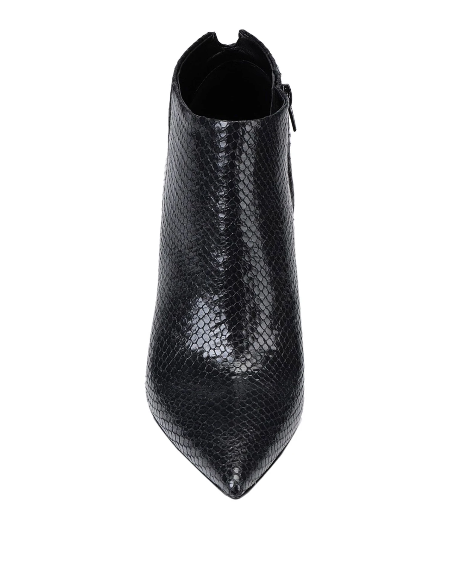 no appliqués, solid color, zipper closure, narrow toeline, spike heel, covered heel, leather lining, rubber sole, contains non-textile parts of animal origin, snakeskin print