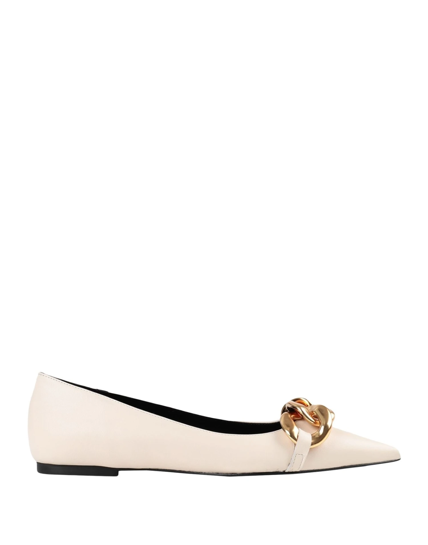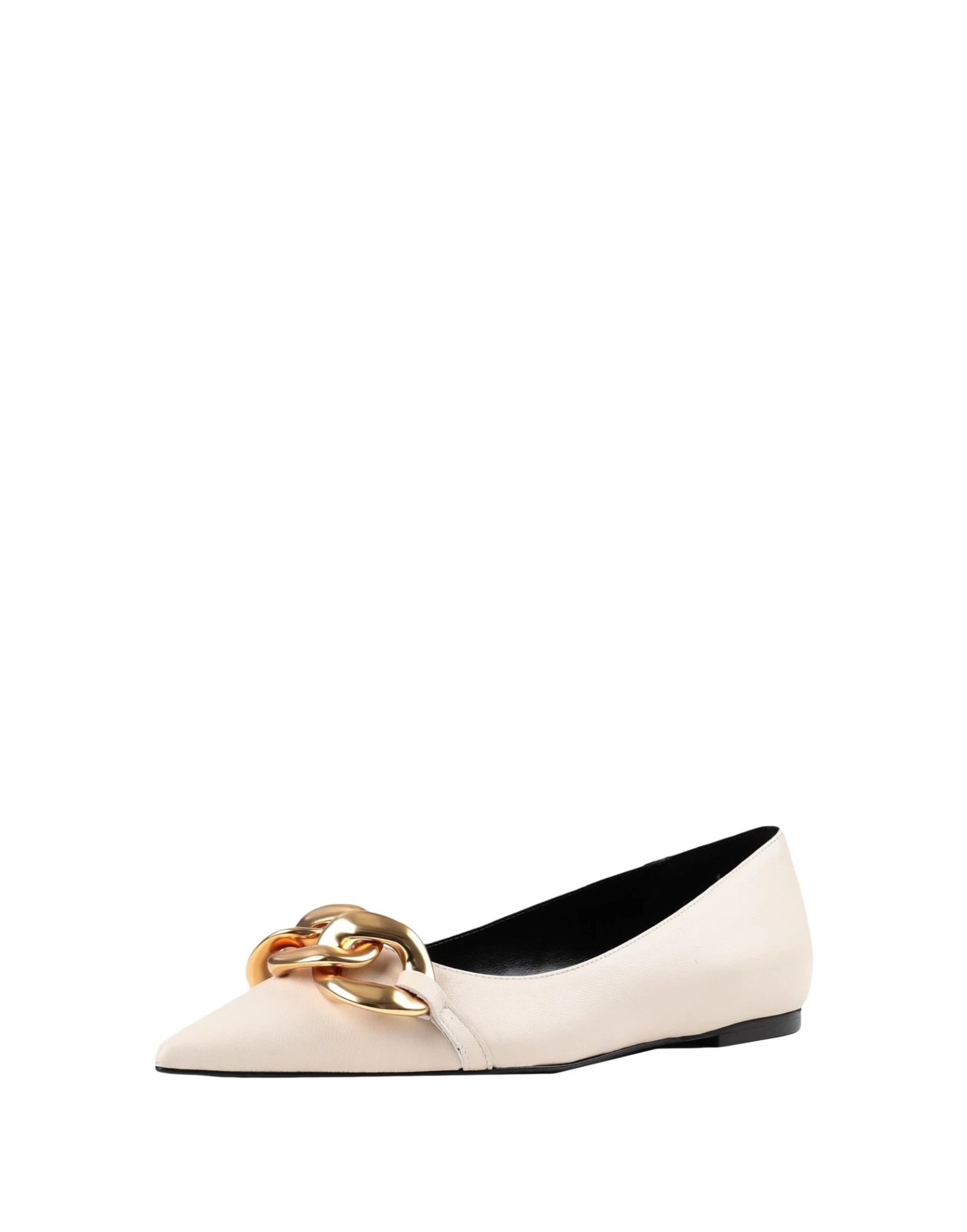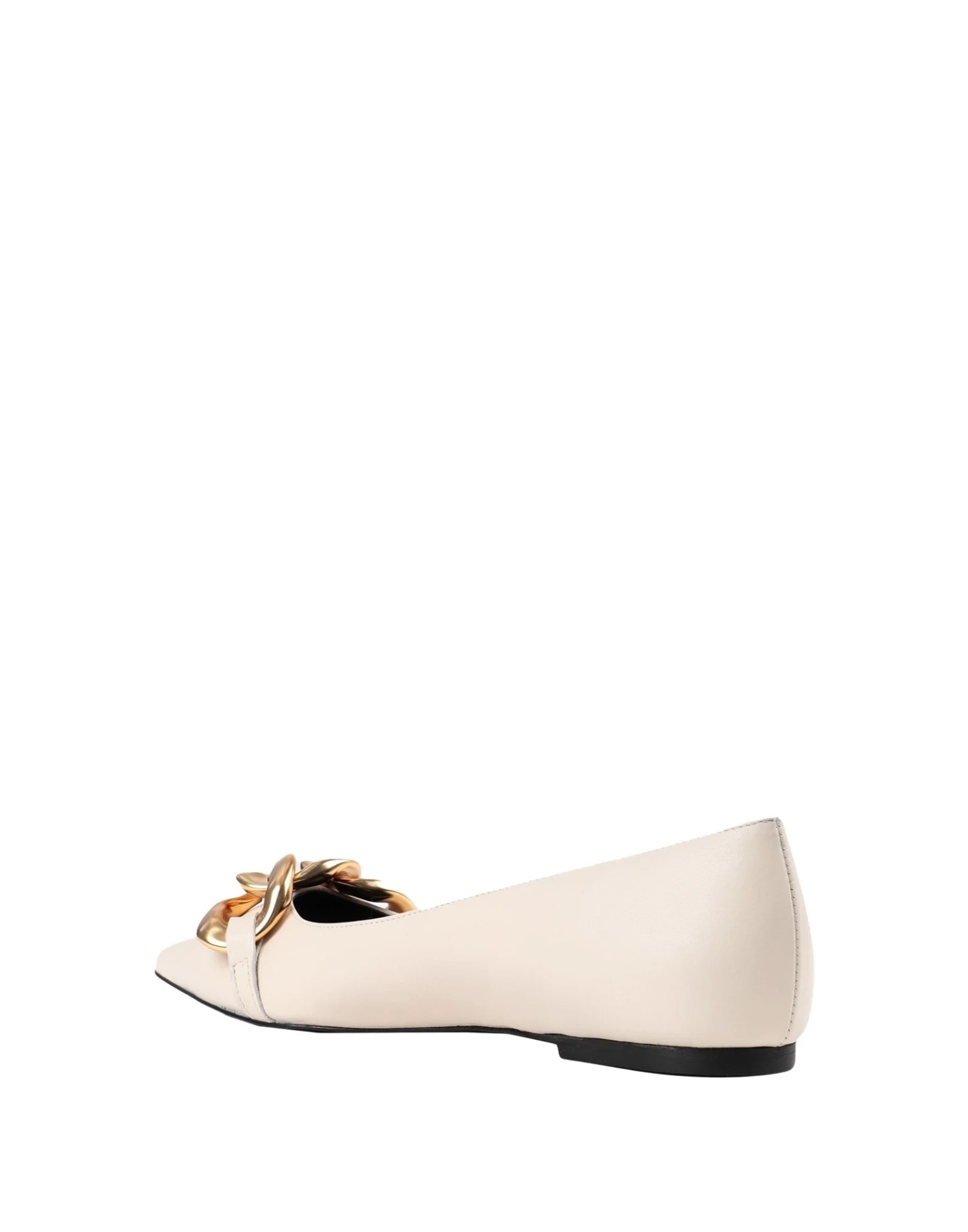 contrasting applications, solid colour with appliqués, leather backing, narrow toeline, flat, leather/rubber sole, contains non-textile parts of animal origin