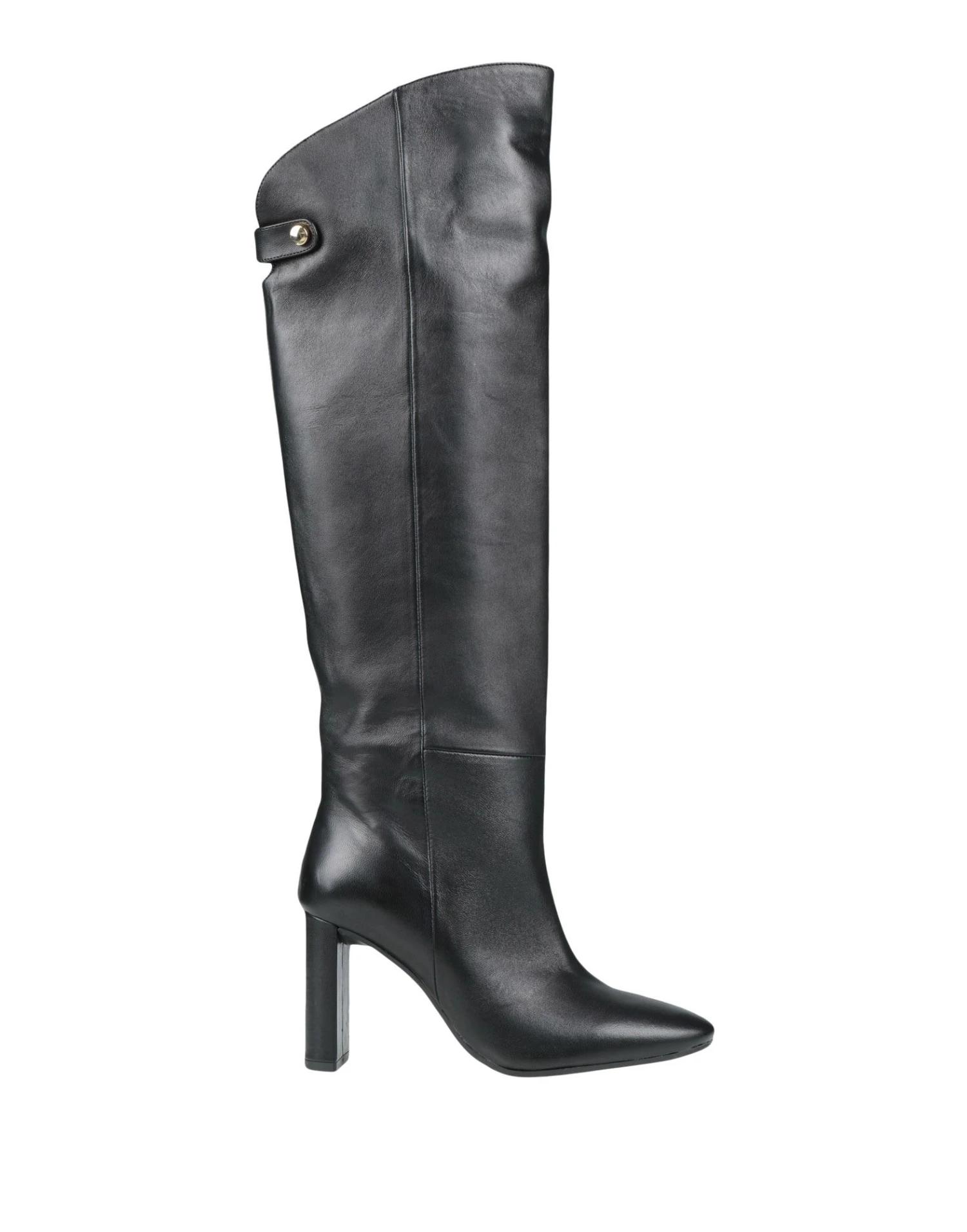contrasting applications, solid color, leather backing, round toeline, geometric heel, rubber sole, contains non-textile parts of animal origin, boots