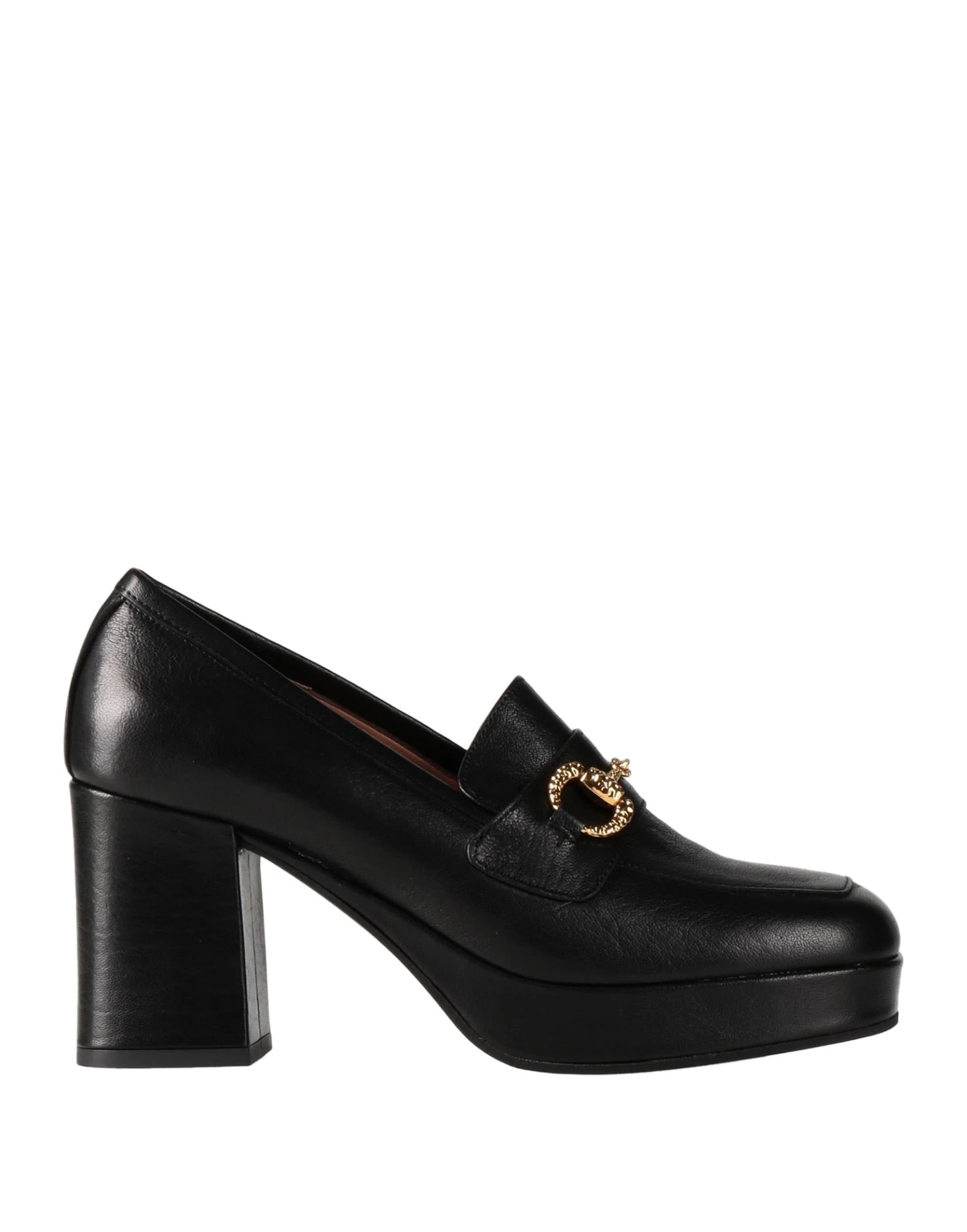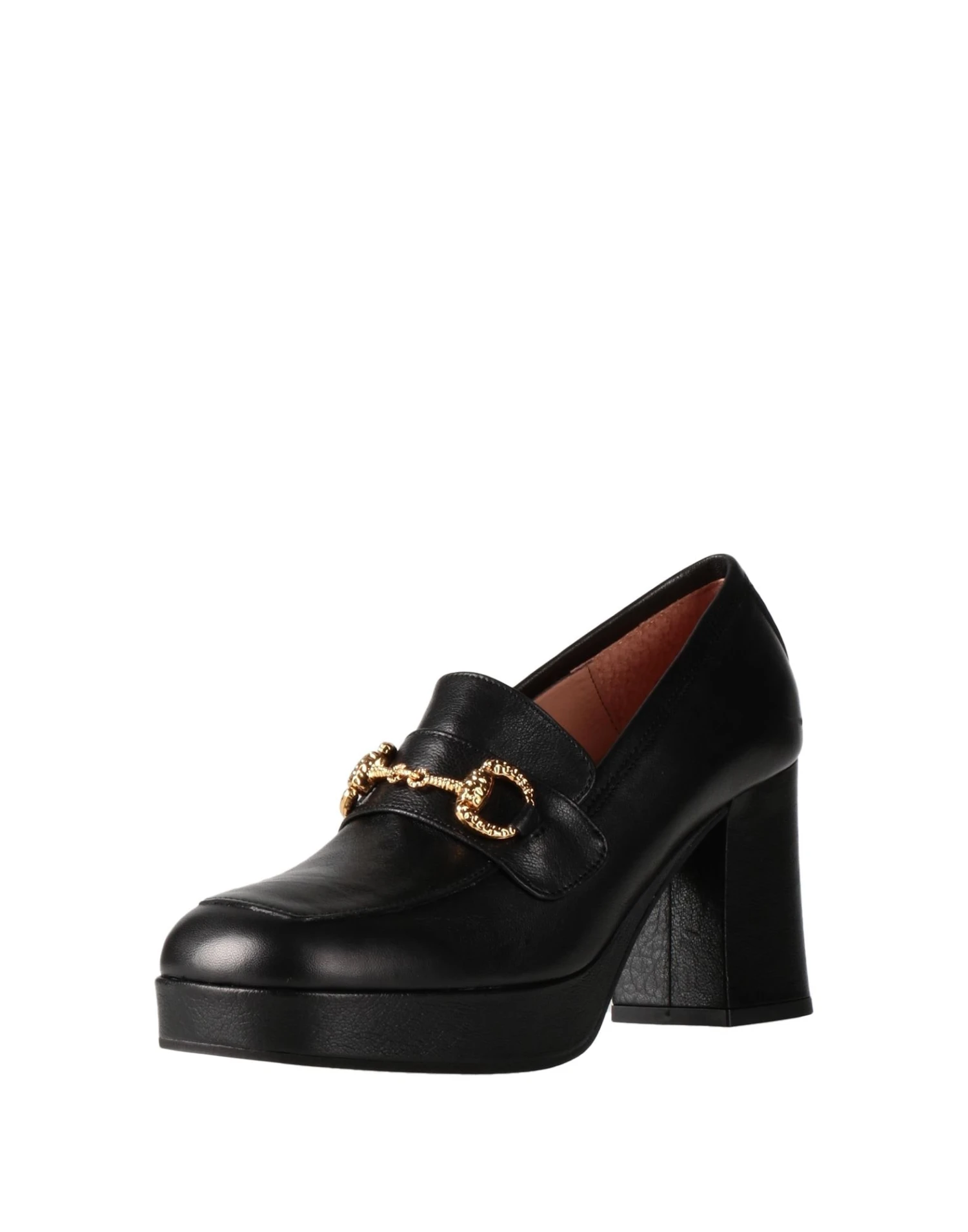 metal applications, solid colour with appliqués, leather backing, square toeline, square heel, covered heel, rubber sole, contains non-textile parts of animal origin