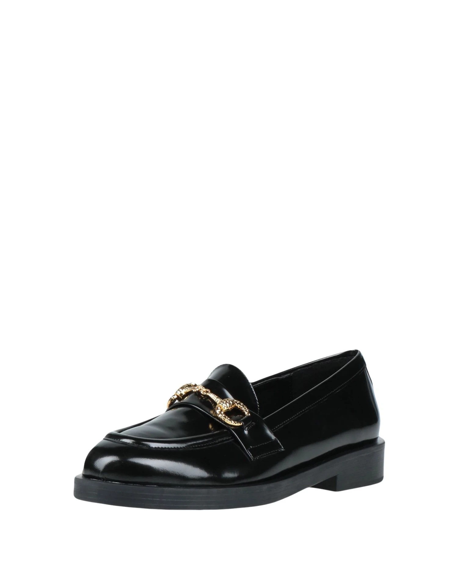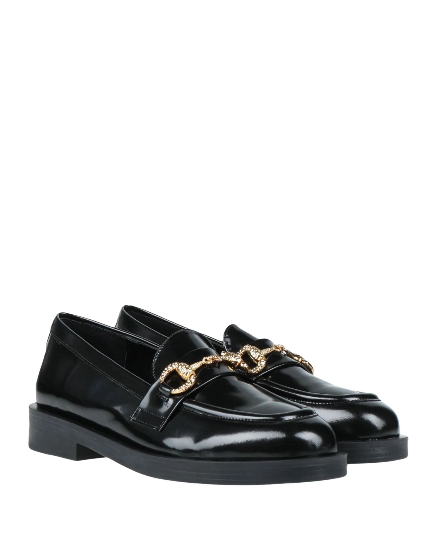 metal applications, solid colour with appliqués, leather backing, round toeline, rubber sole, square heel, contains non-textile parts of animal origin