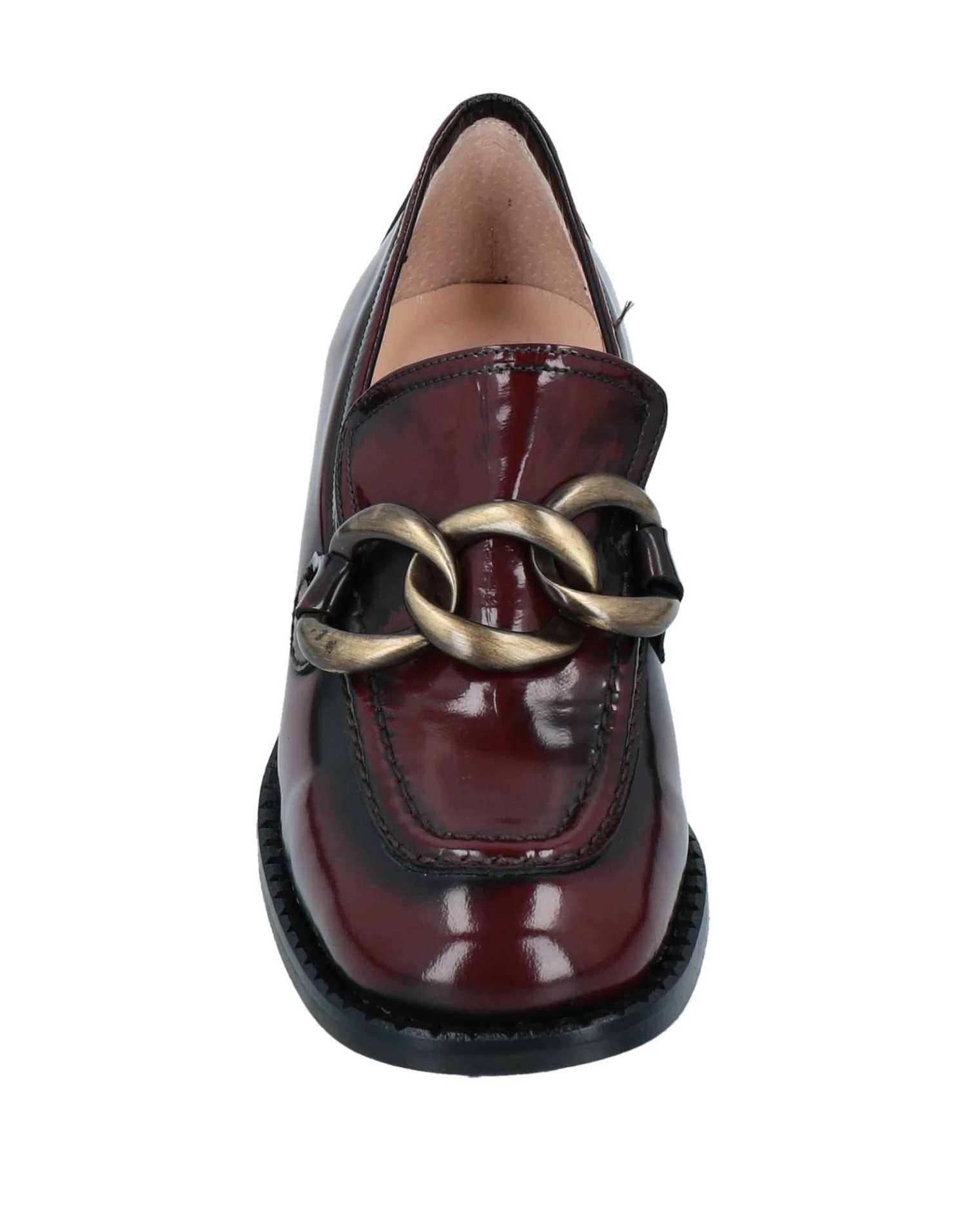 metal applications, solid colour with appliqués, leather backing, round toeline, square heel, rubber sole, contains non-textile parts of animal origin, polished leather