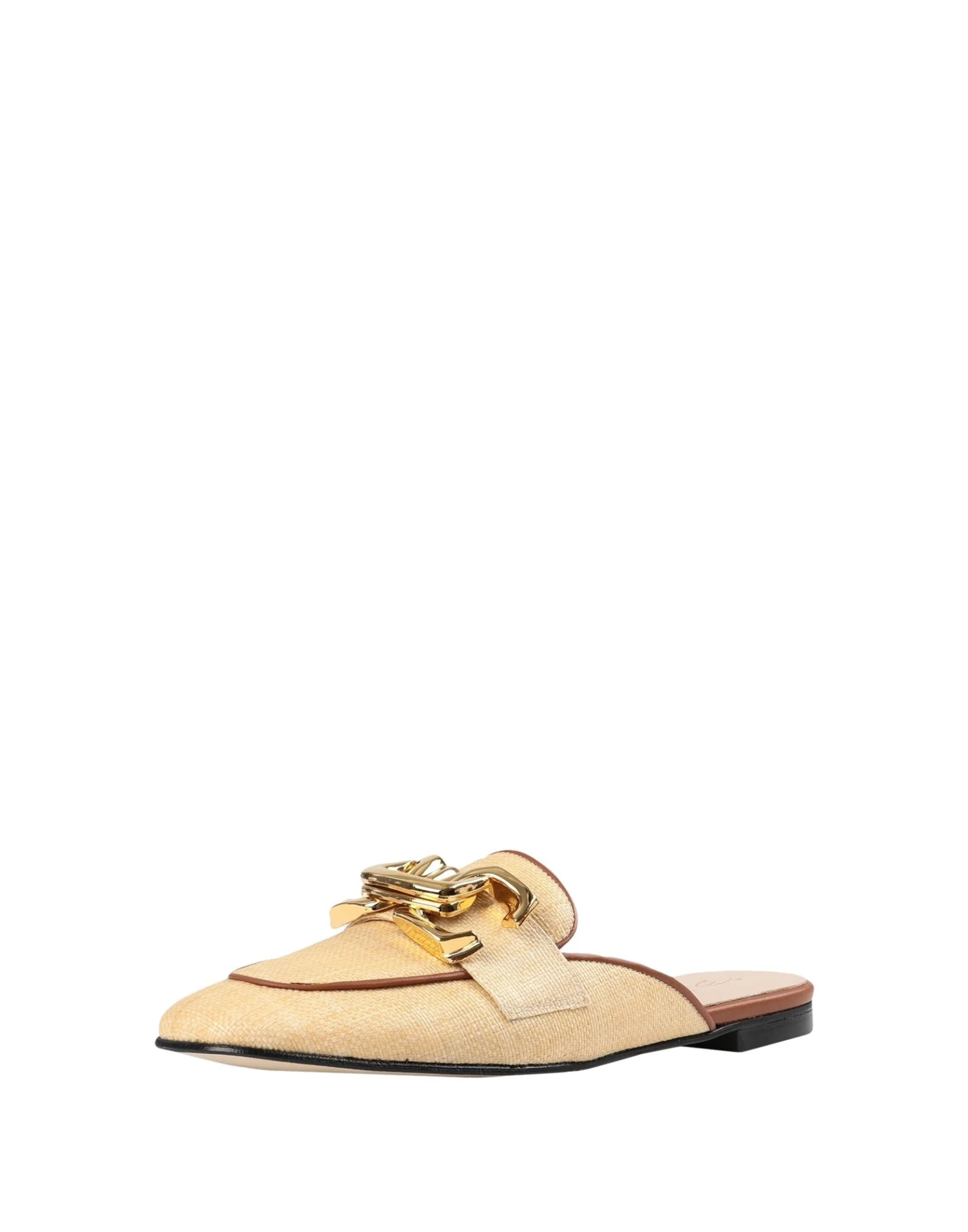 solid colour with appliqués, round toeline, leather sole, leather lining, metal applications, flat, contains non-textile parts of animal origin