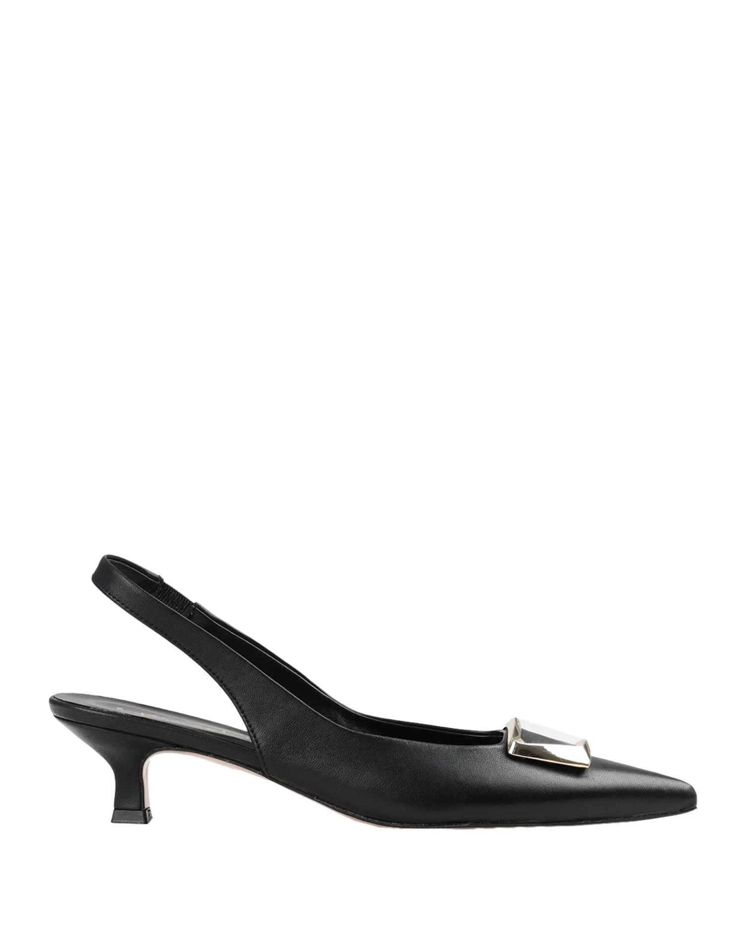 metal applications, solid colour with appliqués, leather lining, narrow toeline, leather sole, spool heel, contains non-textile parts of animal origin