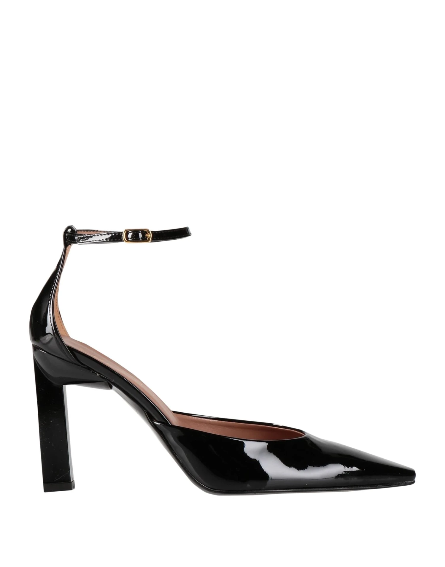 no appliqués, solid color, varnished effect, leather backing, geometric heel, buckling ankle strap closure, square toeline, rubber sole, contains non-textile parts of animal origin