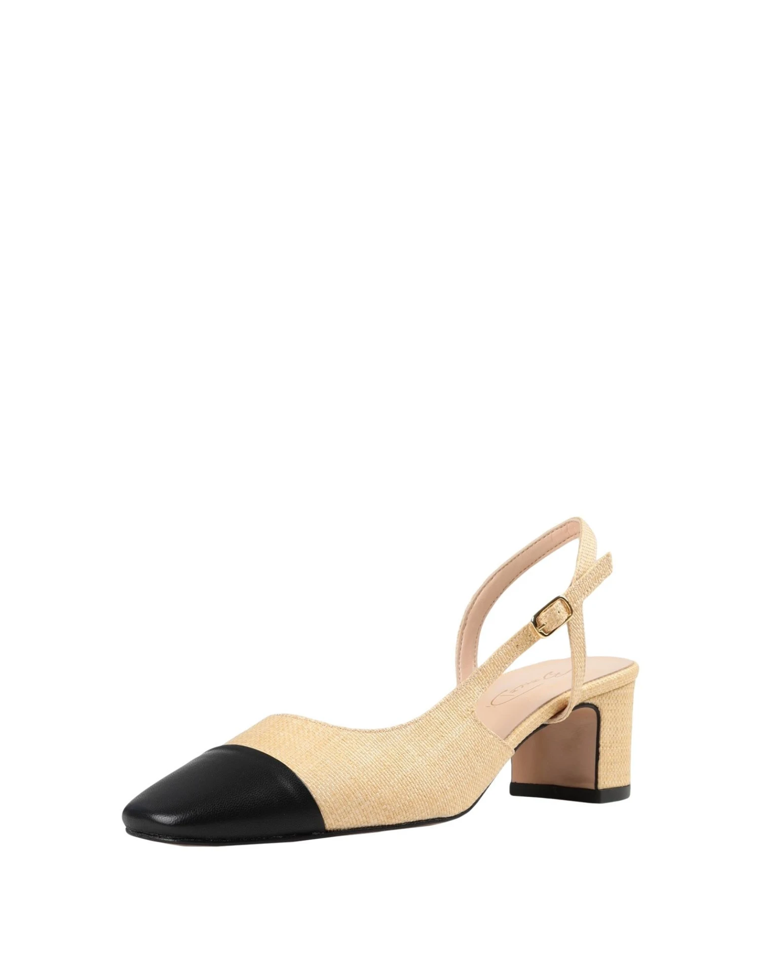 two-tone, square toeline, buckle fastening, leather sole, leather lining, geometric heel, no appliqués, contains non-textile parts of animal origin