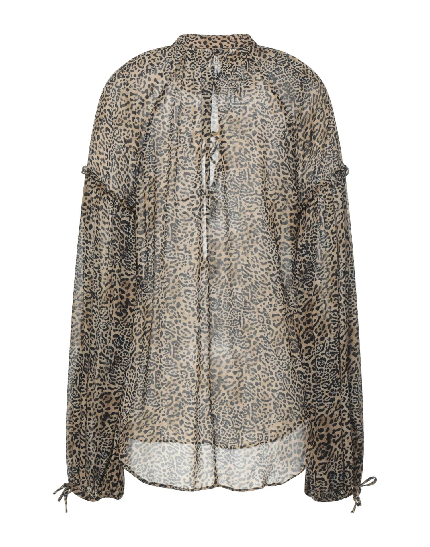 crepe, no appliqués, leopard-print, mandarin collar, long sleeves, no pockets