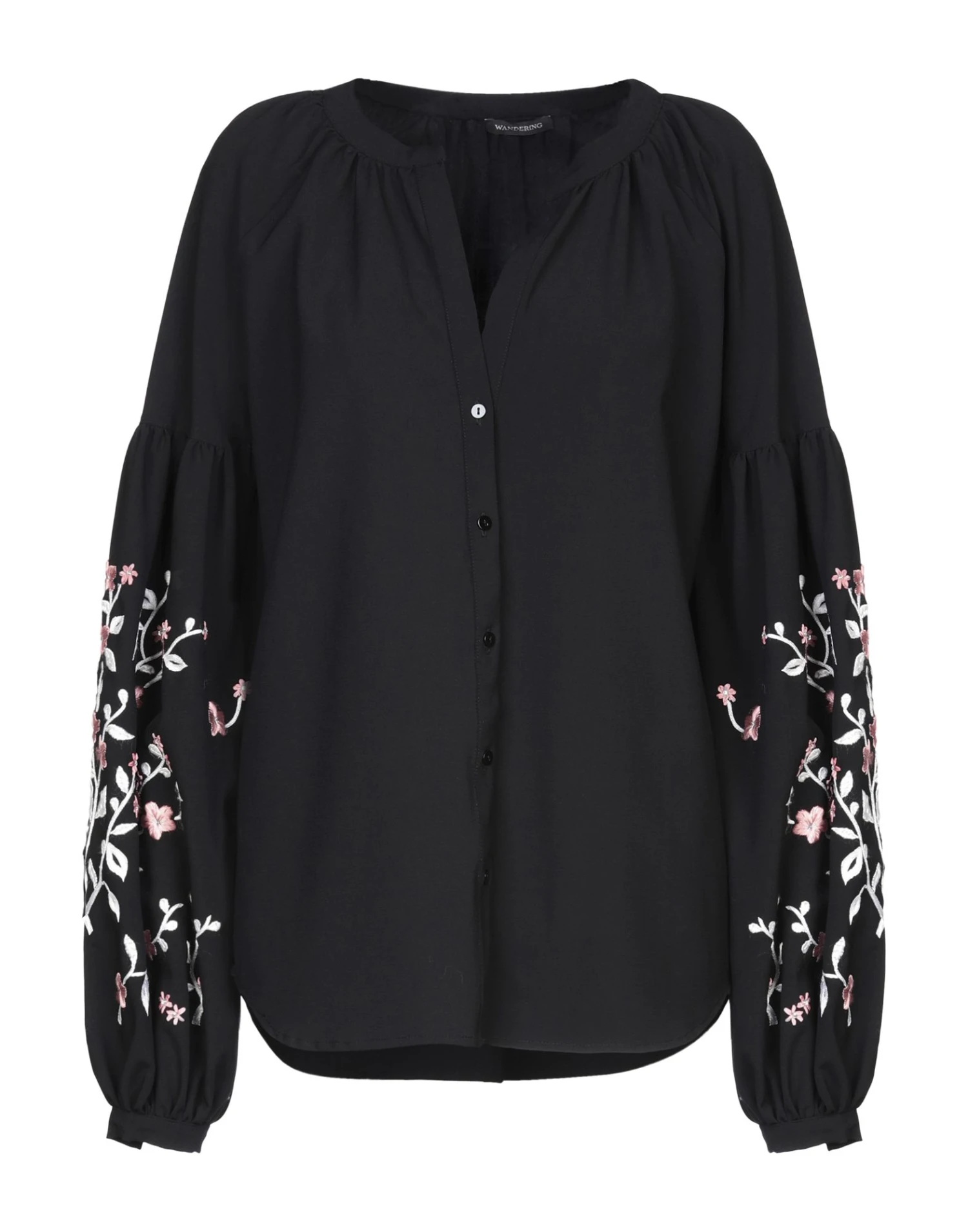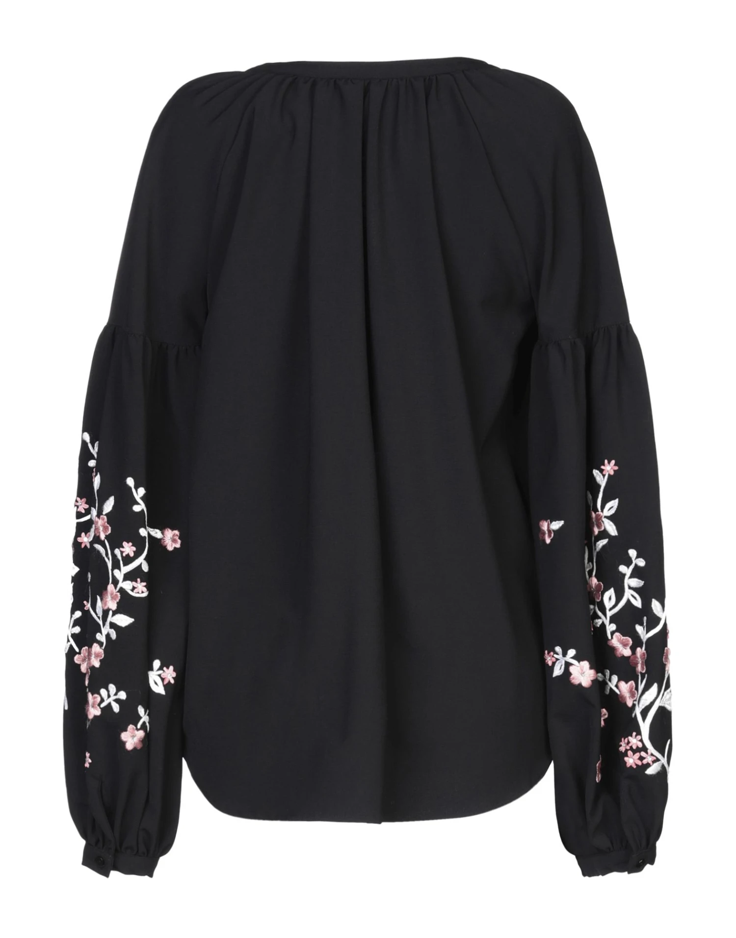 cool wool, beads, embroidered detailing, floral design, front closure, button closing, long sleeves, buttoned cuffs, v-neck, no pockets, stretch