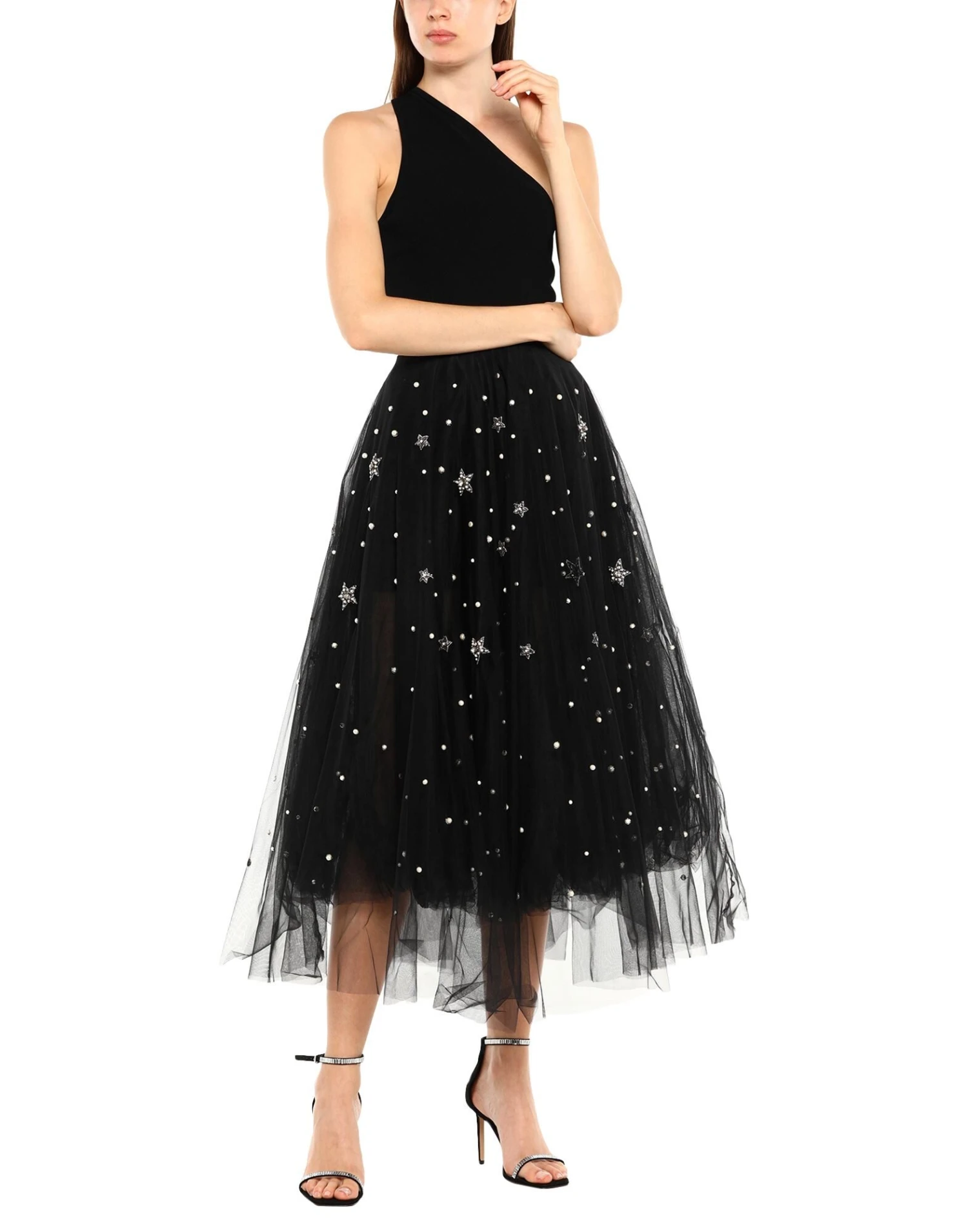 tulle, beads, solid colour with appliqués, mid rise, no pockets, side closure, zipper closure, detachable lining
