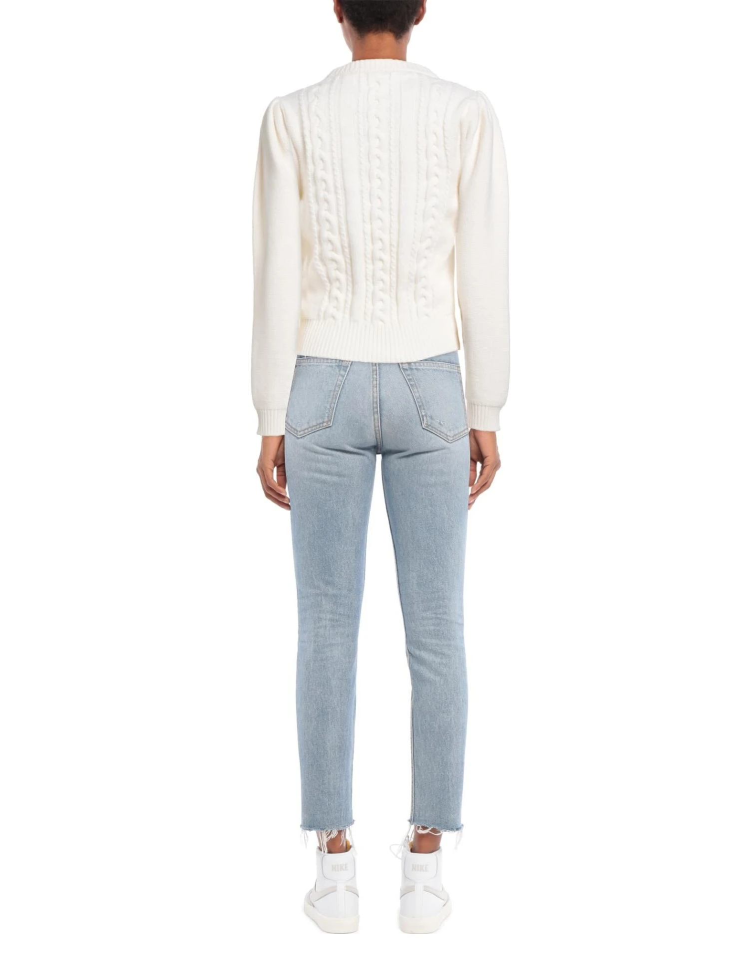 knitted, cable stitch, medium-weight knit, no appliqués, solid color, round collar, long sleeves, no pockets